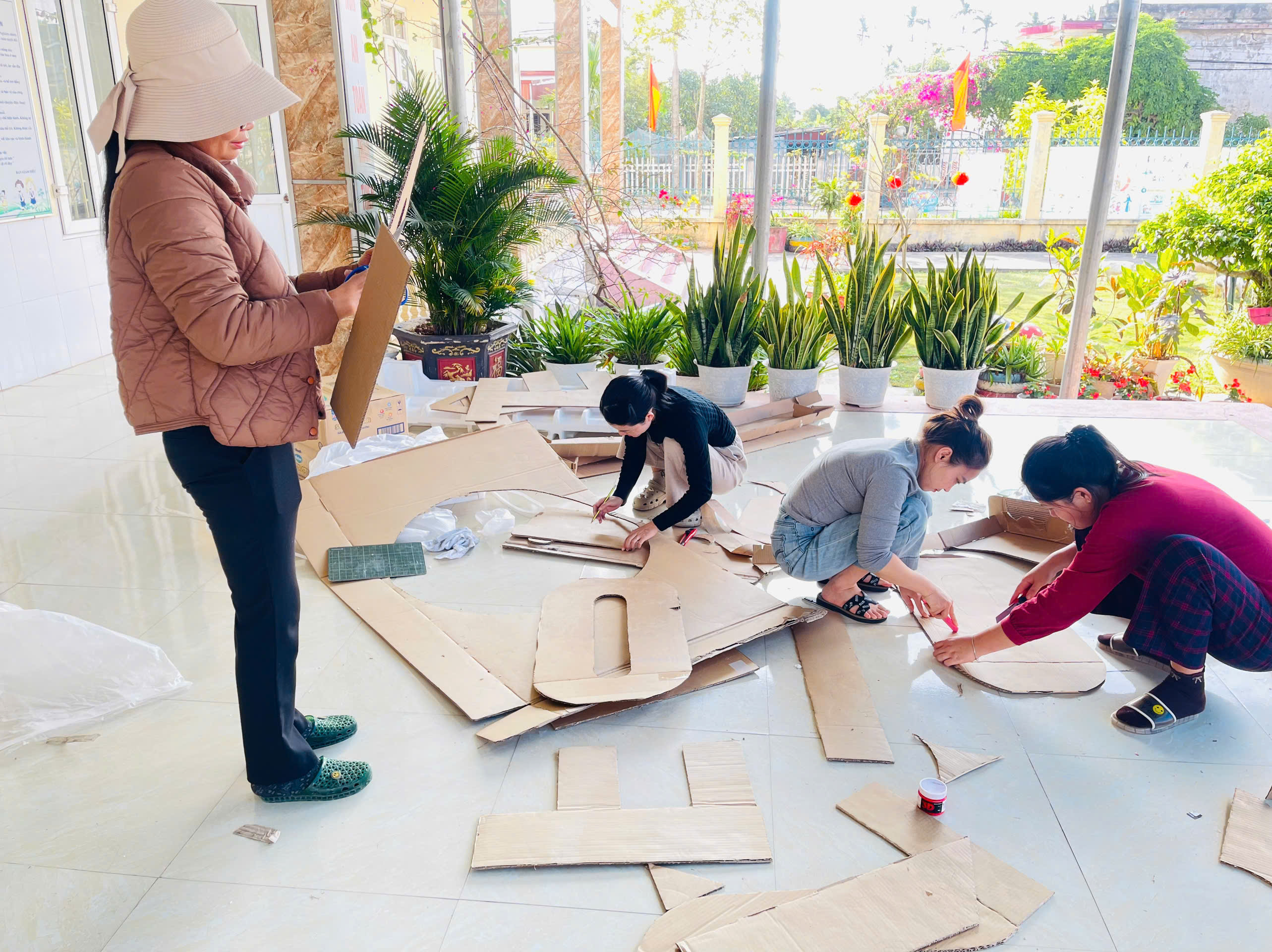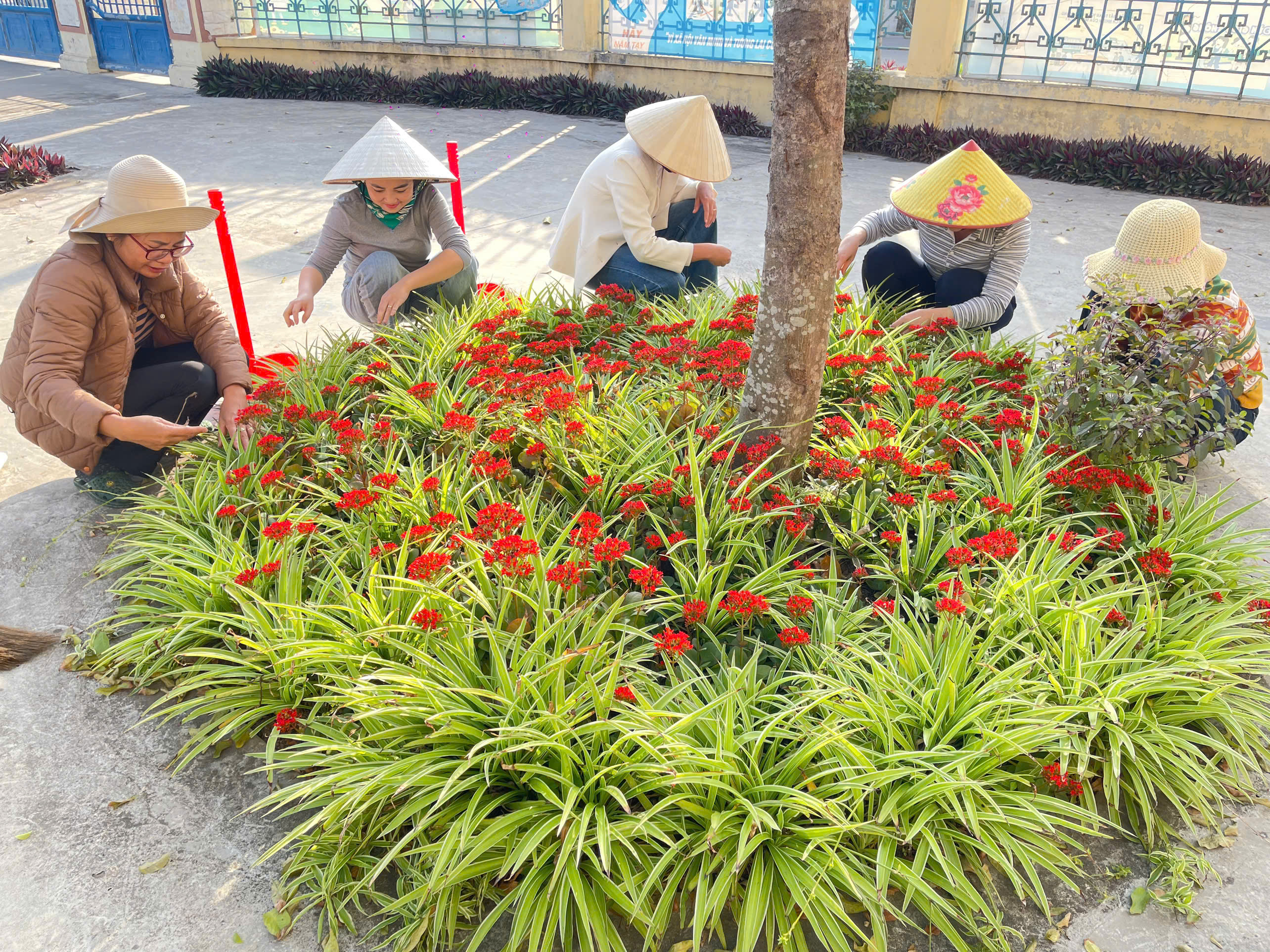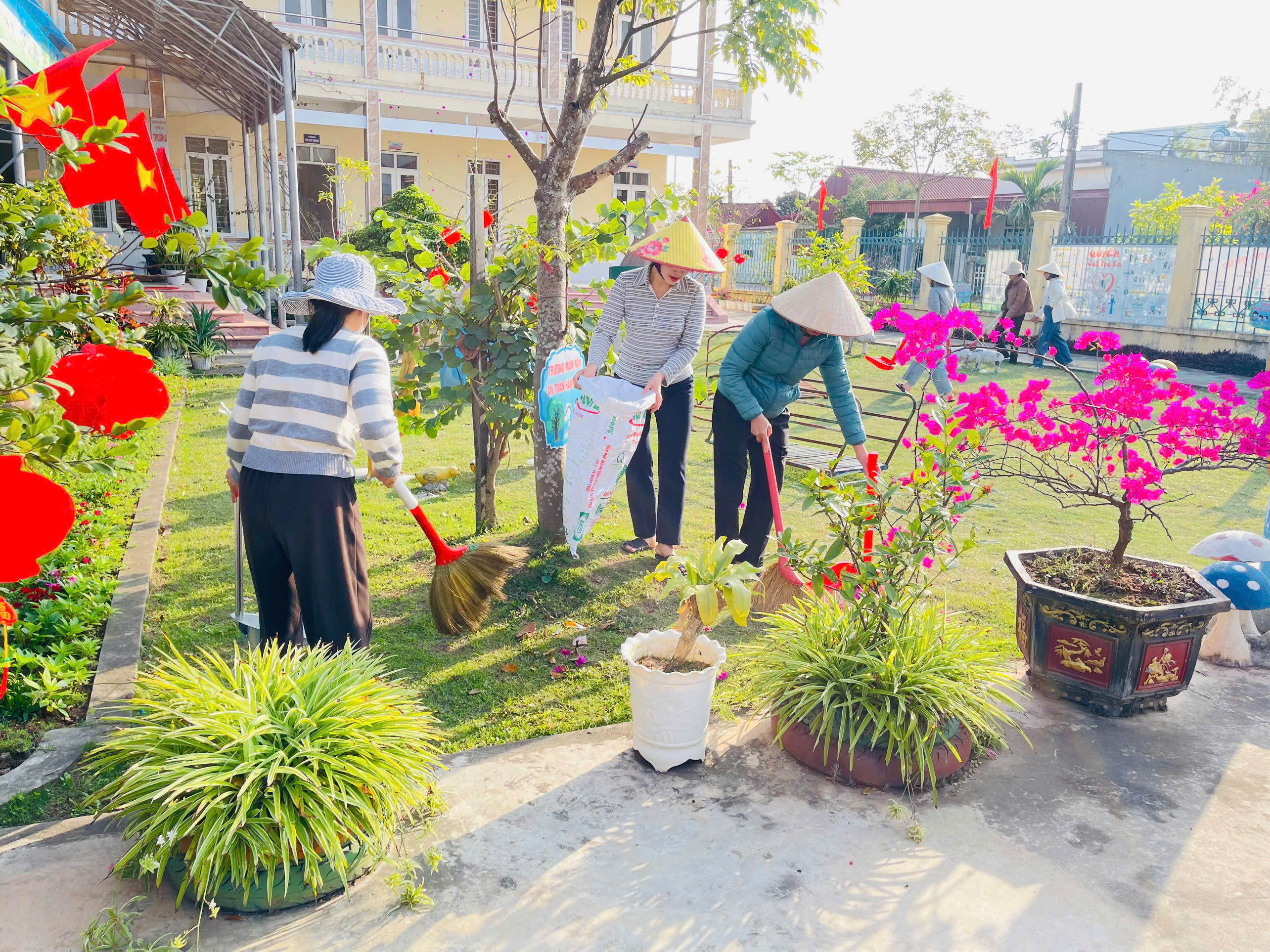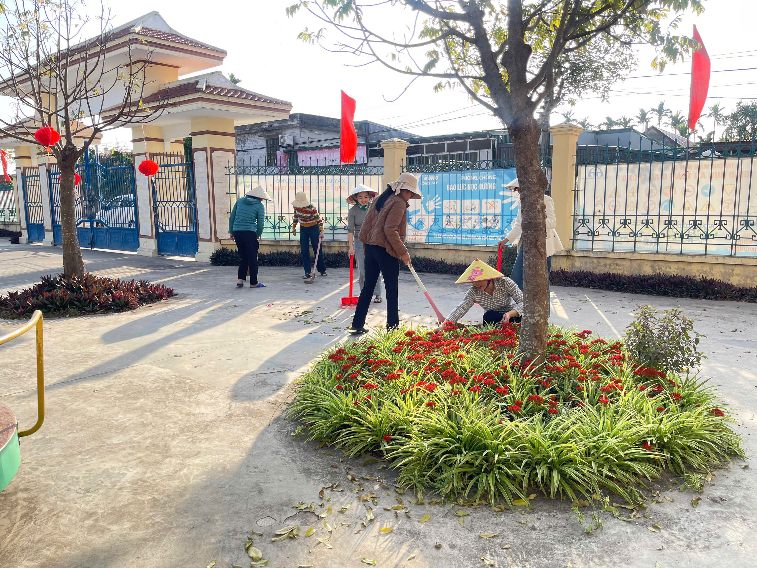 - 🌿 Chăm sóc bồn hoa, cây cảnh, dọn dẹp khuôn viên sân trường xanh – sạch – sáng tạo cảnh quan đón Tết.