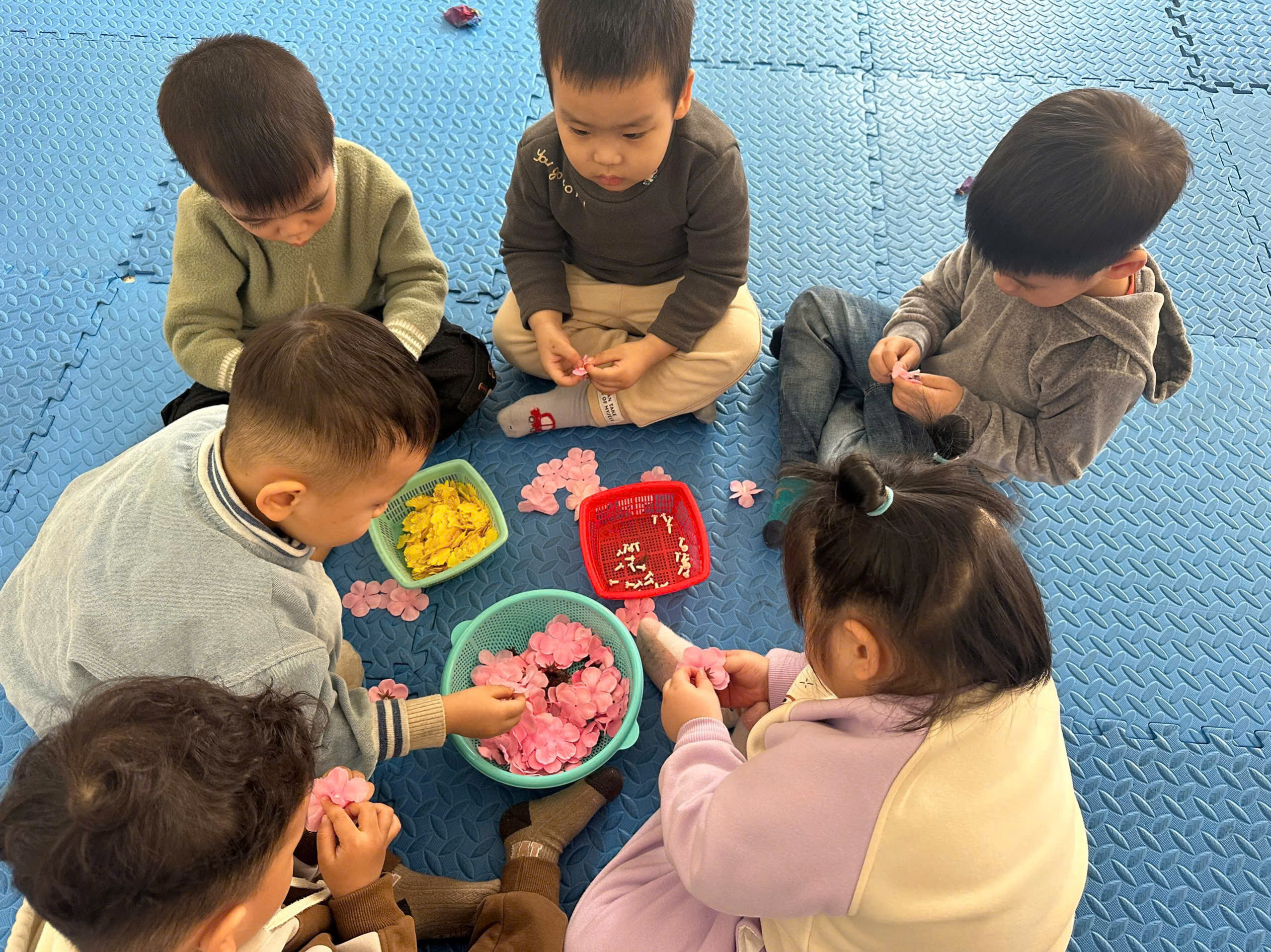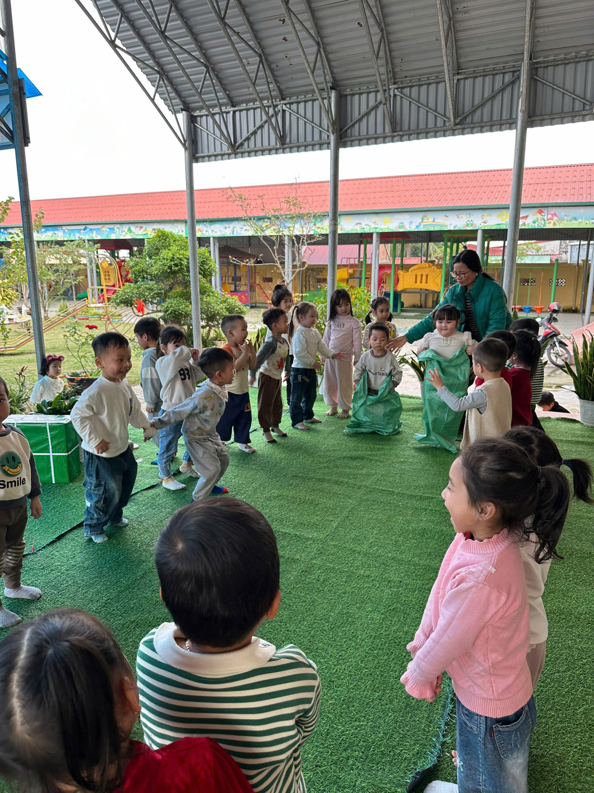 Trong chương trình, các bé được tự tay làm hoa đào, tạo nên những cành đào xinh xắn, rực rỡ sắc xuân. Các con còn được tham gia gói bánh chưng, tìm hiểu về món bánh truyền thống mang ý nghĩa sum vầy, đoàn viên. Không khí thêm phần sôi động với các trò chơi dân gian như nhảy bao bố, kéo co, giúp trẻ rèn luyện sức khỏe, tinh thần đoàn kết và niềm vui tập thể.